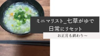 ライフハック ミニマリスト_七草がゆで日常にリセット 夫の年末年始の休暇の最終日夫を愛犬atoちゃんとバス停までお見送りをしました!しょんぼりしている愛犬atoちゃんをしり目にモノクロ張り切って七草がゆを作ることにしました!有り合わせの七草がゆですが、お正月をリセットしました~ 2026.01.09 ライフハック